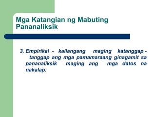 Ang modyul na ito ay ginawa bilang tugon sa iyong pangangailangan. Mapanuri - Ang kabuuan ng isang pananaliksik ay nakabase sa.
