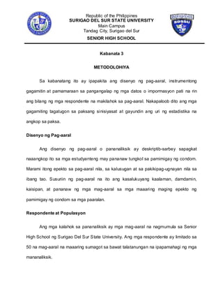 Pag aaral tungkol sa research paper. Sa mga minamahal naming mga Guro. Isinailalaim sa pag-aaral ang 400 na mga mag-aaral sa ika-12 baitang ng senior hayskul. IIRespondente Ang napiling tagatugon ng mga mananaliksik sa pag-aaral na ito ay ang mga mag-aaral ng ika-11 na baiting sa pagka Senior High school sa PHINMA-University of.