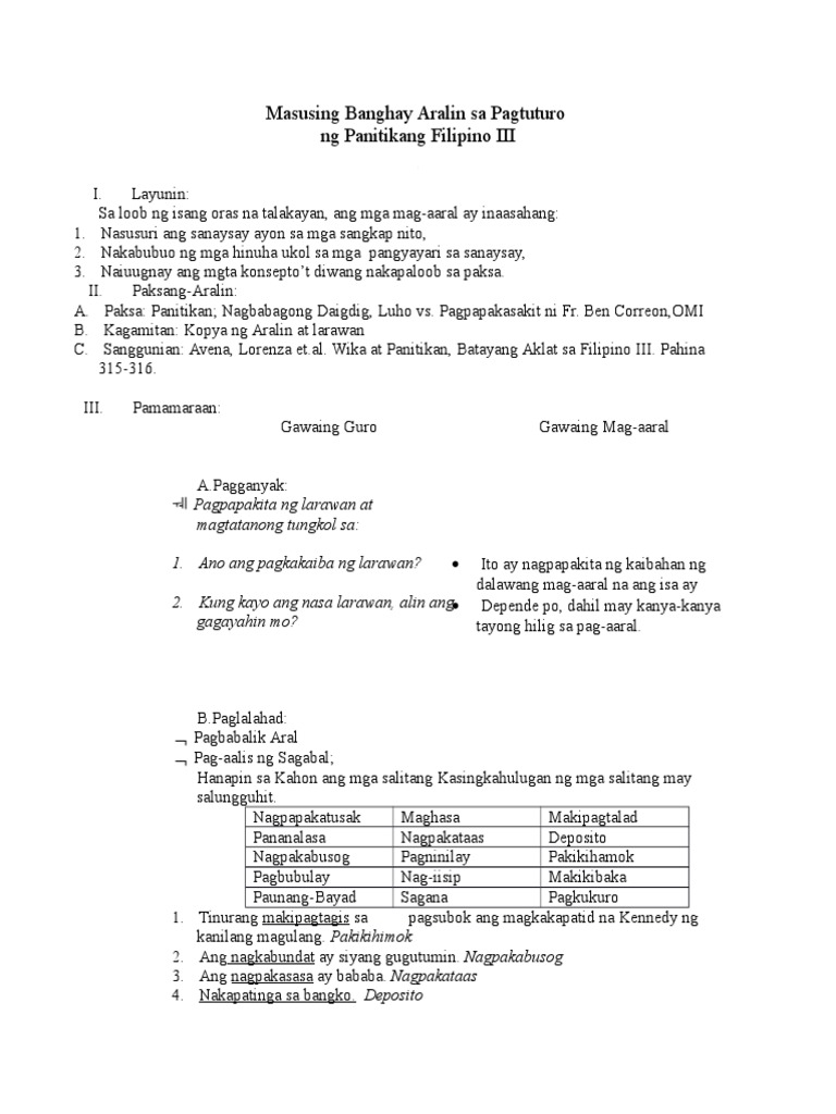 Masusing Banghay Aralin Sa Pagtuturo Pdf