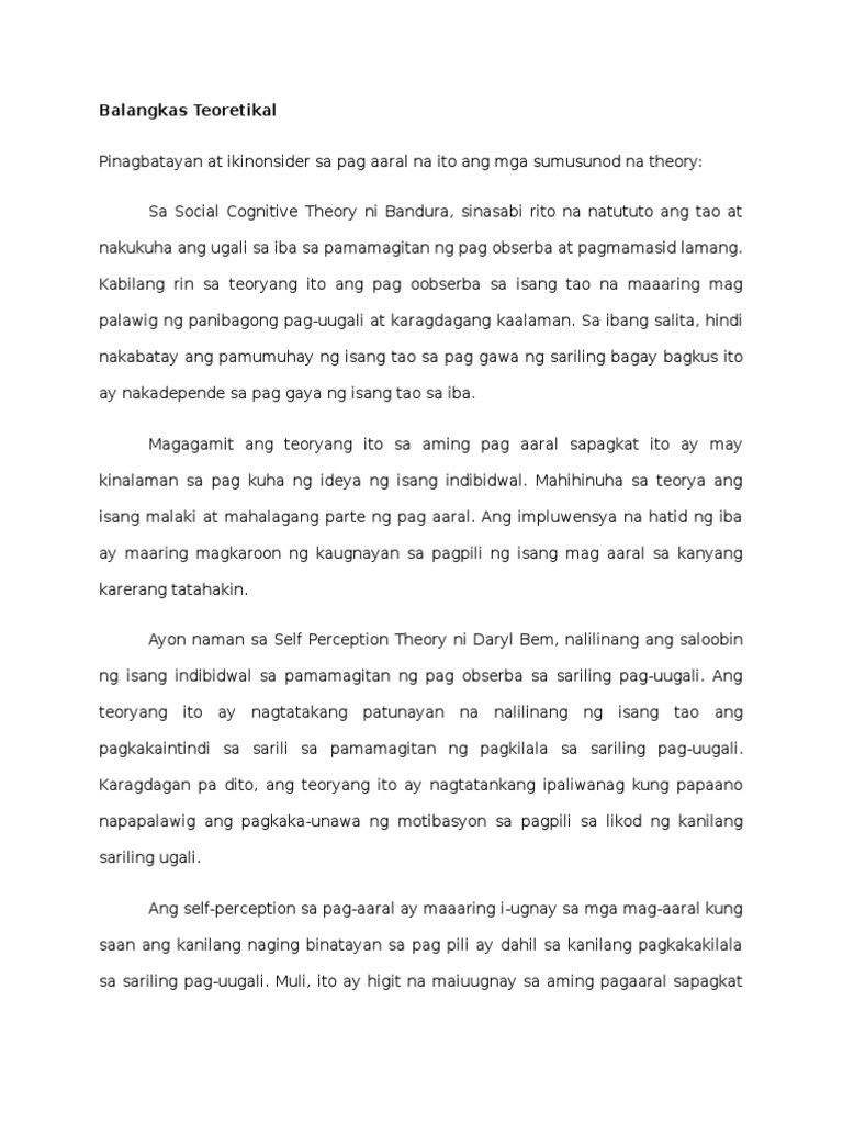 Ayon sa functionalism isang institusyon ay umiiral lamang dahil naghahain ito ng mahalagang papel sa pag-andar ng lipunan. Teorya ng Social Learning Theory ng Bandura Ang teorya ng panlipunang pag-aaral ay batay sa gawain ng psychologist na si Albert Bandura. KABANATA 1 Suliranin at Kaligiran Rasyunal.