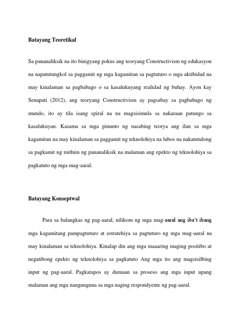 Teorya ang tawag sa siyentipikong pag-aaral sa ibat ibang paniniwala ng mga bagay-bagay na may mga batayan subalit hindi pa lubusang napapatunayan. De V era Suzanne Ann Rosales at Jere miah V illanueva ay. Ang pag-aaral na ito ay naglalayong matukoy ang kakayahan ng mga guro na ituro ang ibat-ibang kasanayan at kagamitan sa pagtutro ng asignaturang Filipino sa panahon ng pandemya.