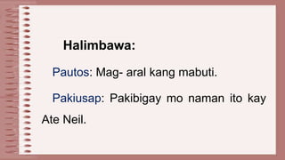 JAY-ANN A loving and generous mother Mrs. Conversationally this often gets shortened to mag-aral kang mabuti which is grammatically accepted. I spent hours just to study for a 10-item quiz.