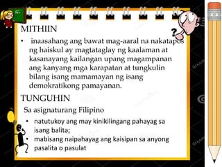 3pagbabasa ng mga pahayagan. Sa mga mamamayang Pilipino. Grade 9 Edukasyon sa Pagpapakatao Modyul.