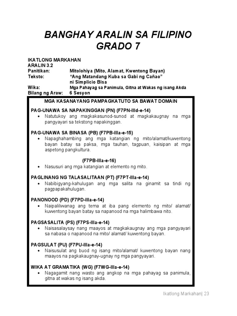 Paghambingin Ang Katangian Ng Alamat Mito At Kuwento Bayan Batay Sa Paksa At Aspekto Pangkulturang Brainly Ph