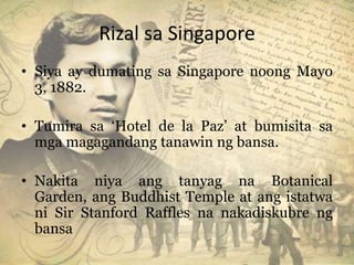 3 Ilahad ang ibatibang mga lugar tauhan at pangyayari mula sa mga paglalakbay ni Jose Rizal. 10 Trinidad kilala sa tawag na Trining. Tulad ni Saturnina tumulong si Sisa sa pag-aaral ni Rizal sa Europa isinangla niya ang kanyang mga alahas at ibinenta niya ang kanyang mga damit para lang matustusan and pag-aaral ni Jose Rizal.