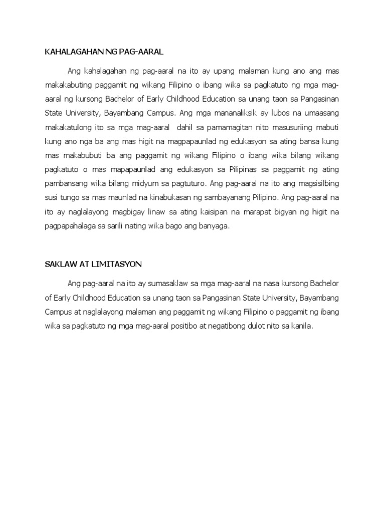 Kahalagahan Ng Pag Aaral At Saklaw At Delimitasyon Pdf