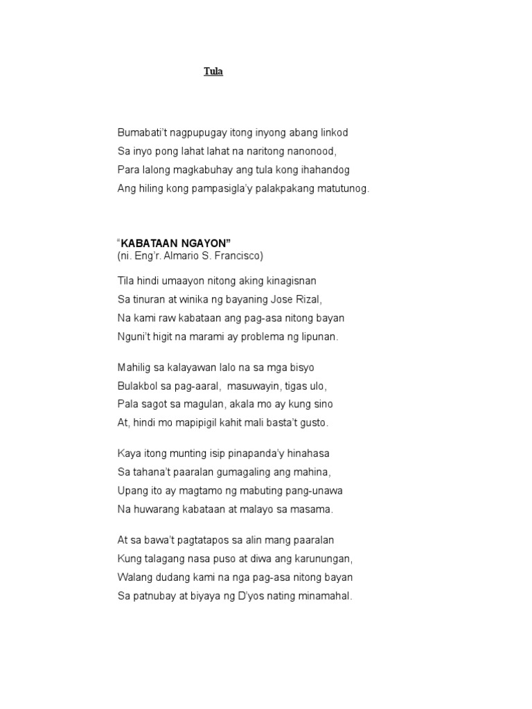 Arts Humanities Communications. Contextual translation of tula ng mag aaral into English. HOME Mabuting mag aaral tula Mabuting mag aaral tula Essays and Research Papers.